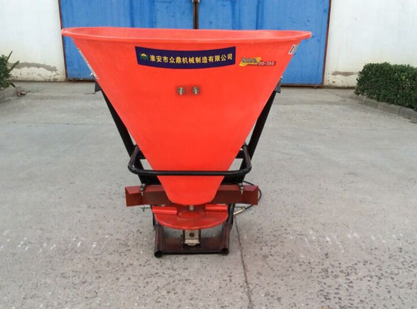 顆粒狀或球狀化肥經(jīng)人工倒入,進(jìn)入機(jī)具的肥料斗箱,通過手動肥料調(diào)節(jié)控制桿,肥料落入撒肥盤,撒肥盤做旋轉(zhuǎn)運動,通過旋轉(zhuǎn)離心力將肥料以圓周狀形式拋至土壤表面。